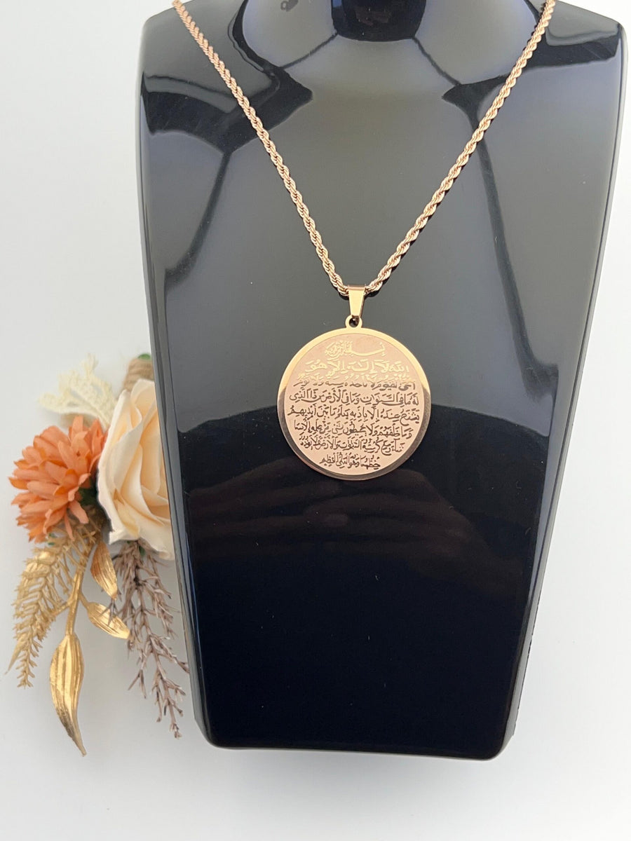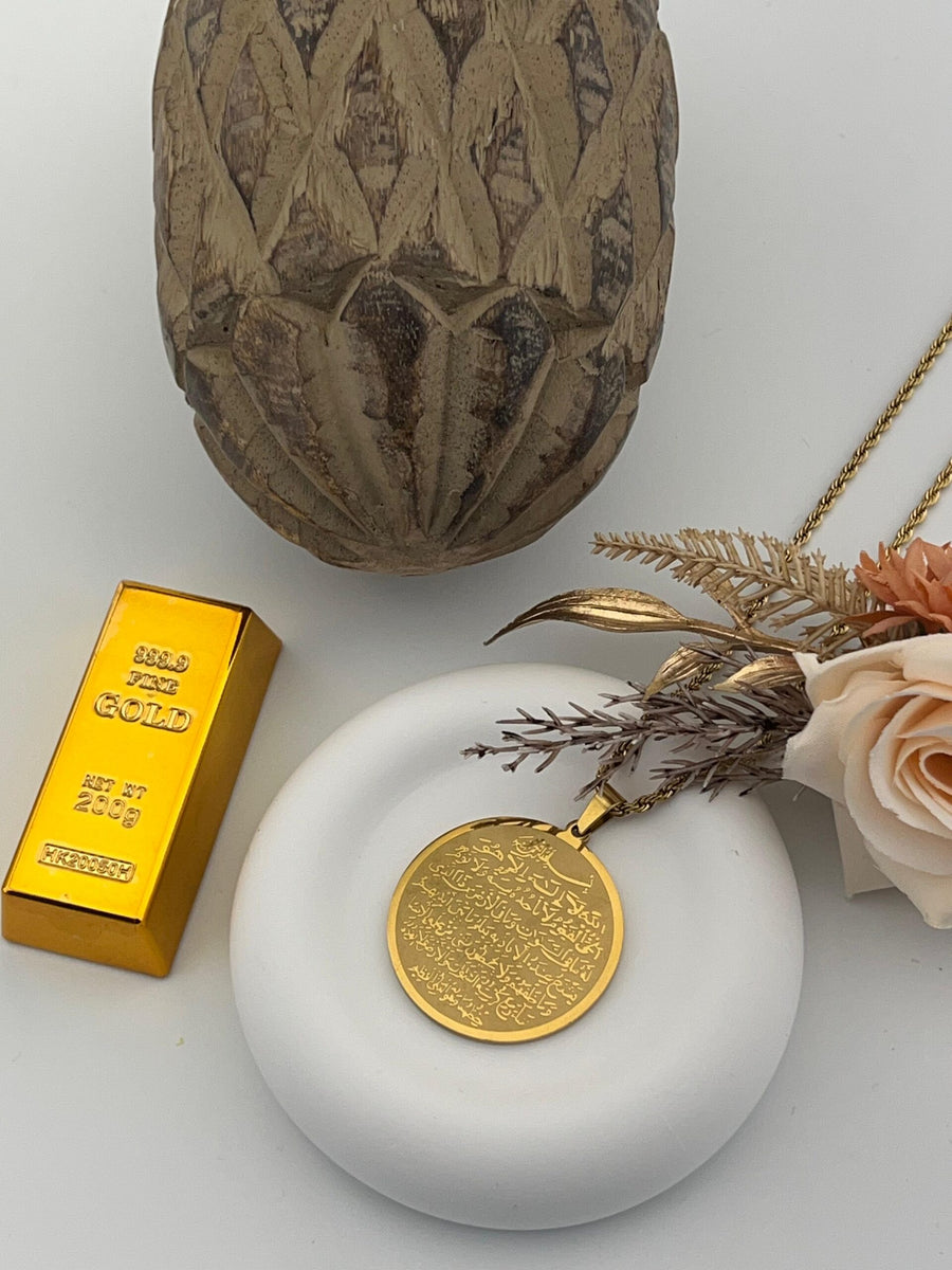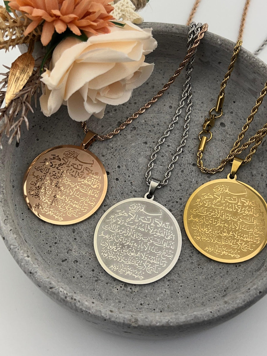 Korte beschrijving: Elegante Ayatul Kursi halsketting (35 mm) met fijne afwerking. Een betekenisvolle blikvanger, ideaal om dagelijks te dragen of cadeau te doen.