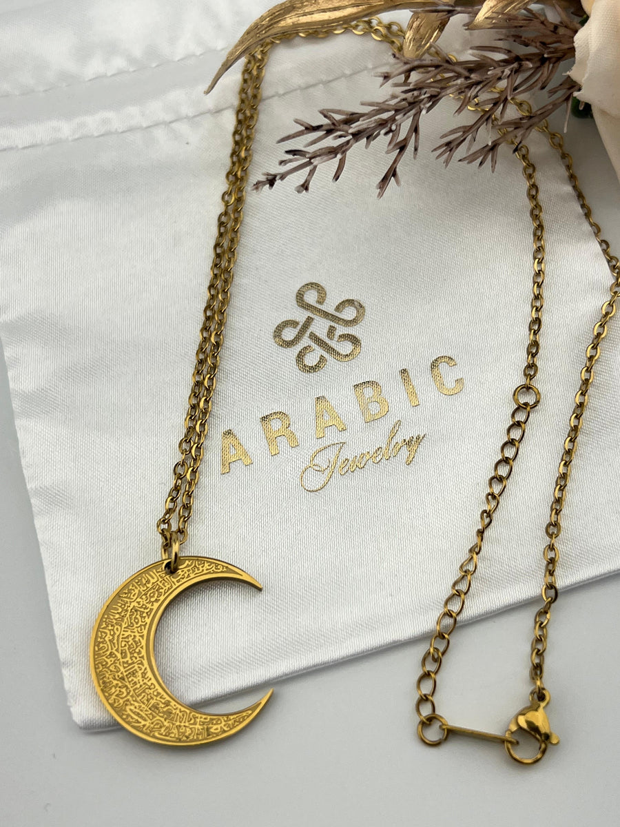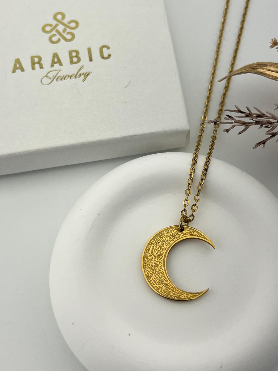 Korte beschrijving: Ayatul Kursi ketting in halve maan design, met fijne gravure.