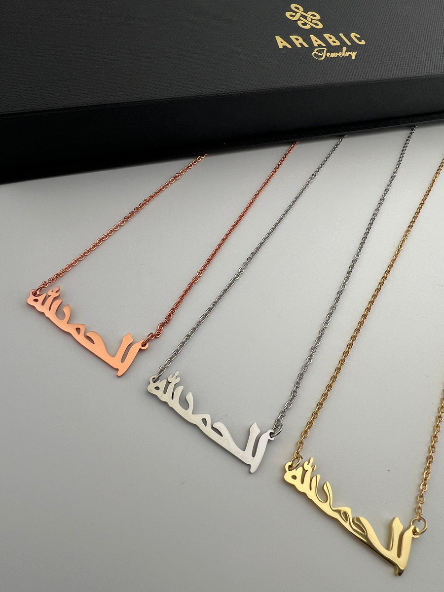Korte beschrijving: Tijdloze ketting met de inscriptie “Al Hamdulillah” – een herinnering aan dankbaarheid.
