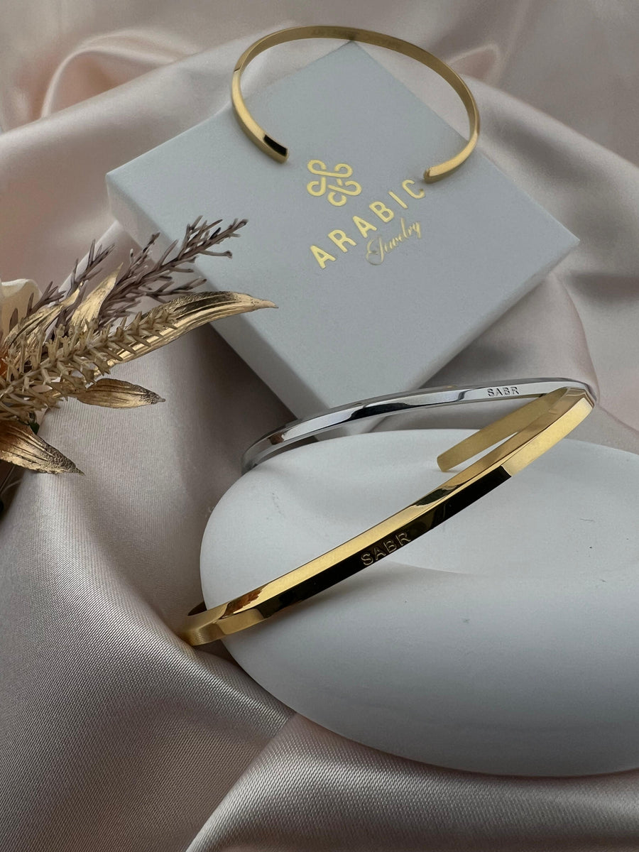 Korte beschrijving: Armband met ‘Sabr’ (geduld), minimalistisch en krachtig.