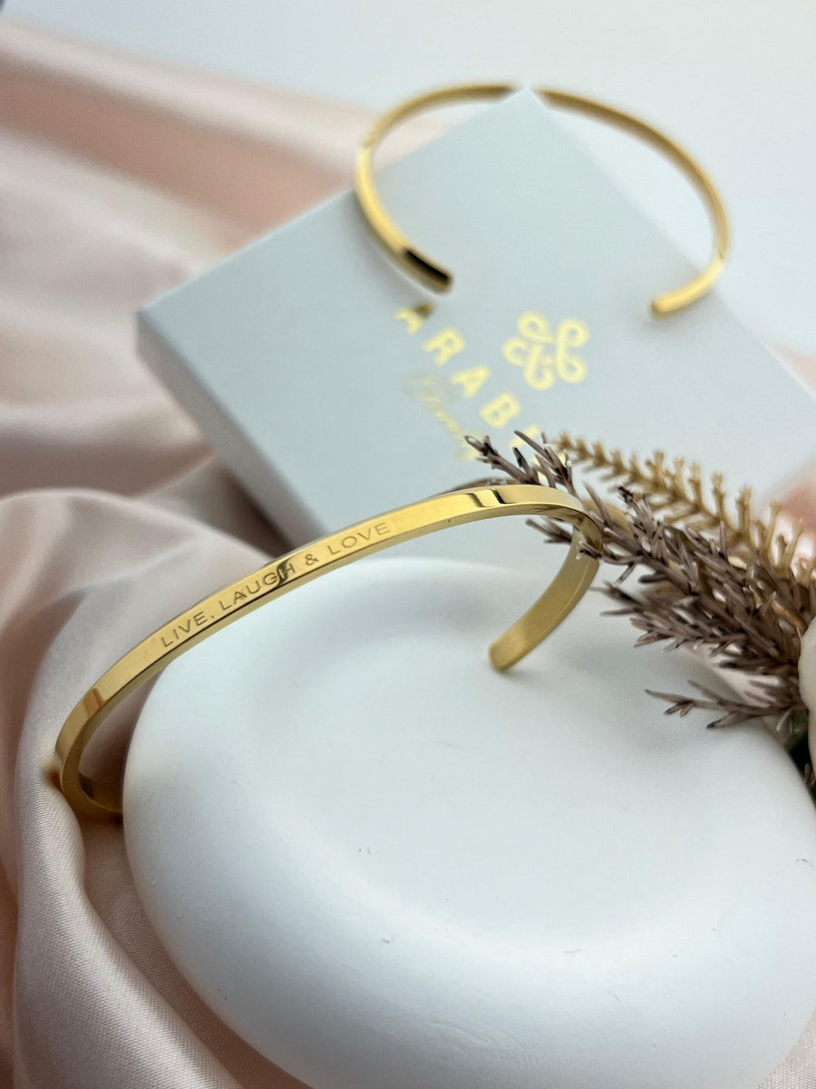 Armband met ‘Live, Laugh, Love’ – een tijdloze boodschap in een elegant design.